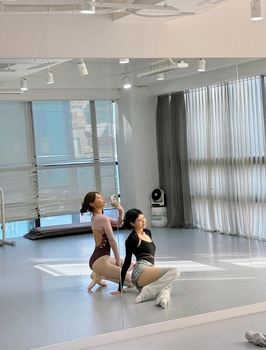 이번에 공개된 사진들은 두 사람이 함께 발레와 스트레칭을 하는 모습을 담고 있어요. 햇살이 따뜻하게 들어오는 넓은 연습실, 거울에 비친 두 사람의 모습은 그 자체로 한 폭의 그림 같았죠.