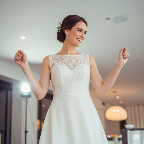- 짧은 기장 또는 비대칭 디자인: 바닥에 끌리는 긴 기장의 드레스 대신, 발목까지 오는 미디 기장이나 무릎 위까지 오는 짧은 기장의 드레스도 인기를 얻고 있습니다. 앞은 짧고 뒤는 긴 '언밸런스(하이-로우)' 디자인이나, 트임 디테일이 들어간 드레스도 주목받고 있습니다. 이러한 스타일은 야외 결혼식, 스몰 웨딩, 하우스 웨딩 등 자유롭고 캐주얼한 분위기의 결혼식에 특히 잘 어울립니다. 활동성도 뛰어나서 야외 촬영 시에도 편리합니다.