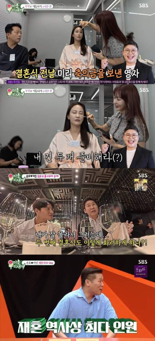 개그계 대표 커플, 김준호와 김지민이 드디어 부부의 연을 맺었습니다! 지난 7월 27일 방송된 SBS '미운 우리 새끼'(이하 '미우새')에서는 두 사람의 세기의 결혼식 현장이 공개되며 시청자들의 눈과 귀를 사로잡았는데요. 약 1,200명의 하객이 참석한 초호화 결혼식은 그야말로 역대급 스케일을 자랑했다고 합니다. 결혼식을 앞둔 김준호, 김지민의 설렘 가득한 모습부터, 코미디언다운 유쾌한 혼인 서약, 그리고 모두를 눈물짓게 한 감동의 순간까지! 과연 이들의 결혼식은 어떤 모습이었을까요? 지금부터 저와 함께 김준호♥김지민 부부의 로맨틱 웨딩 스토리를 미리 엿볼까요?