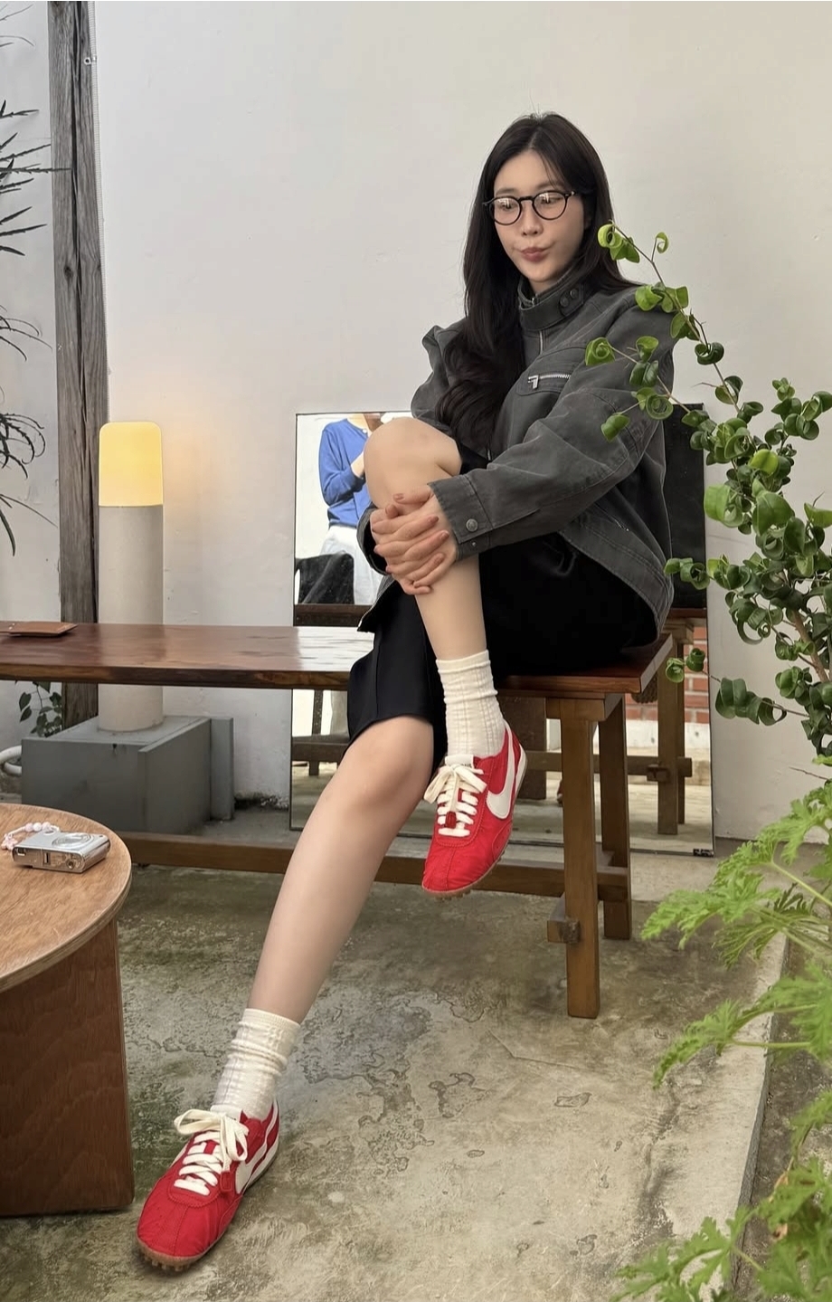 이해리 씨처럼 '시크한 아우터'와 '톡톡 튀는 스니커즈'의 반전 조합, 한번 시도해 보시는 건 어떨까요?