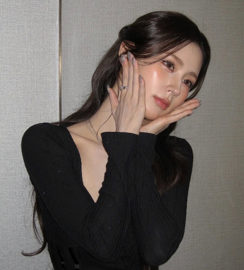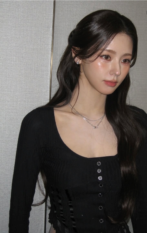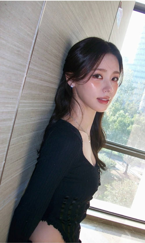 그리고 이번에 올라온 사진들 중에서 제 눈길을 사로잡은 건 바로 블랙 컬러의 의상들이었어요. 미연 님이 피부가 워낙 하얗고 투명하다 보니까 블랙을 입었을 때 그 대비 효과가 확실히 사는 것 같아요. 스퀘어 넥으로 된 블랙 탑을 입은 사진들을 보면, 목선이랑 쇄골 라인이 시원하게 드러나면서 여리여리한 느낌을 주더라고요.