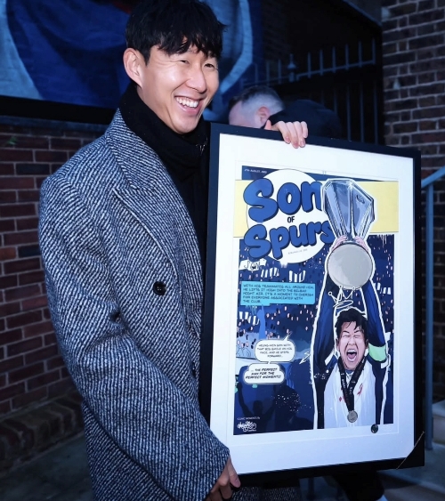 마지막으로 'Son of Spurs'라고 적힌 액자를 들고 활짝 웃는 사진을 보세요. '스퍼스의 아들'이라니, 이보다 더한 극찬이 있을까요? 그림 속에는 트로피를 들어 올리며 포효하는 손흥민 선수의 모습이 담겨 있습니다. 이 그림을 선물 받고 아이처럼 기뻐하는 표정을 보니, 그가 얼마나 이 팀을 사랑하고 또 팬들에게 받은 사랑을 소중히 여기는지 느껴집니다. 긴 시간 동안 한 팀에서 헌신하며 팀의 상징이 된다는 건, 실력만으로는 불가능한 영역이잖아요. 꾸준함과 충성심, 그리고 팀을 이끄는 리더십까지 모든 박자가 맞아떨어졌기에 가능한 일입니다.
