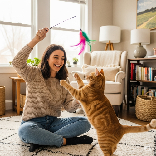 • 혼자 놀 수 있는 환경 조성: 보호자 외출 시 고양이가 혼자서도 지루하지 않게 시간을 보낼 수 있도록 다양한 장난감(노즈워크 장난감, 자동 장난감 등), 숨숨집, 창밖 구경이 가능한 캣타워 공간 등을 제공해주세요.