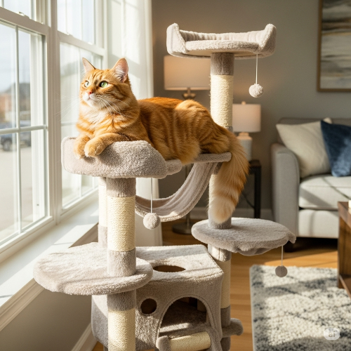 • 안전한 공간 제공: 고양이가 스트레스를 받거나 두려움을 느낄 때 숨을 수 있는 높은 곳(캣타워)이나 아늑한 공간(숨숨집)을 충분히 마련해 주세요.