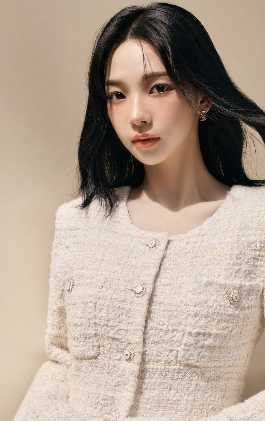 화이트 컬러가 주는 깨끗하고 순수한 느낌이 카리나 님의 뽀얀 피부 톤과 어우러져서 그야말로 '형광등 미모'를 완성했는데요. 보통 트위드 소재는 자칫하면 올드해 보일 수도 있는데, 카리나 님은 이걸 특유의 세련된 분위기로 소화해서 정말 고급스럽게 연출했더라고요. 특히 목선이 드러나는 라운드 넥 디자인이 그녀의 긴 목과 작은 얼굴을 더욱 돋보이게 해주는 것 같아요.