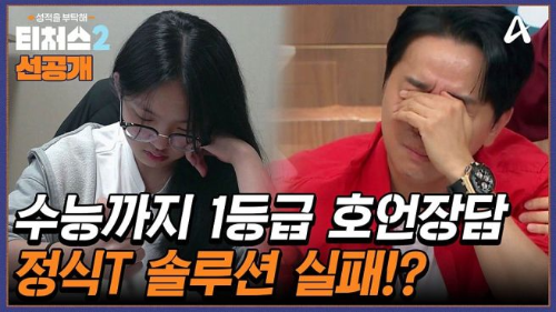 하지만 3월 모의고사 후, 충격적인 결과가 나왔습니다. 도전학생은 제작진에게 전화해 오열했는데, 이전 성적과 다름없는 3등급이 나온 것이었습니다. '티처스' 최초로 조정식 쌤의 솔루션이 실패로 돌아간 순간이었습니다. 😭 조정식 쌤도 "모의고사 쳤을 때 90점 중반까지 나왔고 다 틀릴 문제는 아니었다"며 결과에 의아해했습니다. 미미미누 님은 "실전에서 '영어 울렁증'이 왔나 보다"라고 추측했고요.