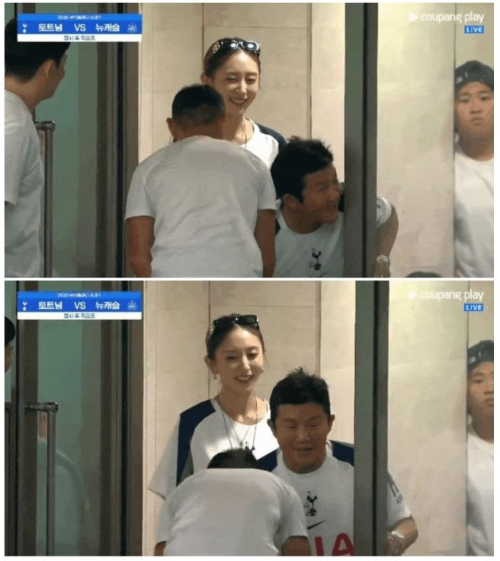 이날 경기 중계 화면에는 또 하나의 흥미로운 장면이 포착되었습니다. 바로 조세호 씨가 손흥민 선수의 아버지, 손웅정 씨와 반갑게 인사를 나누는 모습이었는데요. 조세호 씨는 평소에도 축구에 대한 애정이 깊고, 손흥민 선수에 대한 팬심을 여러 번 드러내셨었죠. 그런 조세호 씨가 직접 경기장에서 손웅정 감독님과 만나 인사를 나누는 모습이라니, 축구 팬들에게는 더욱 특별한 장면이었을 것 같아요. 조세호 씨 뒤편으로는 아내 정수지 씨의 모습도 함께 포착되어 눈길을 끌었답니다.