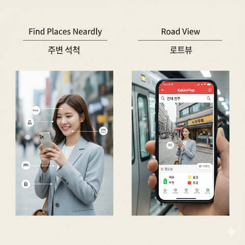 👀 5. '주변' 검색과 '로드뷰'로 더 이상 헤매지 않기