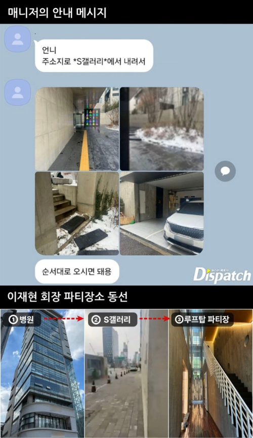 첫 번째 집결지는 강남 도산대로에 위치한 한 병원이었습니다. 참석자들은 이곳에서 먼저 코로나19 검사를 받아야 했습니다. 검사가 끝나면, 두 번째 좌표인 청담동의 한 갤러리 앞으로 이동하라는 지시가 내려옵니다. 그리고 그 갤러리 앞에서, 주소가 아닌 '사진 6장'으로 이루어진 마지막 암호를 받게 됩니다. 매니저는 "사진 순서대로 걸어서 오시면 된다"고 지시했고, 사진을 따라 도착한 곳은 갤러리에서 약 160m 떨어진 한 패션 브랜드 매장 건물의 6층 루프탑이었다고 합니다. 이처럼 복잡한 과정을 거치는 이유는, 파티의 장소와 참석자들의 동선을 철저히 비밀에 부치기 위함으로 보입니다.