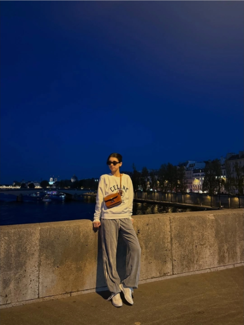 수지의 파리 패션 역시 많은 팬들의 이목을 집중시켰습니다. 그녀는 CELINE 로고가 큼직하게 들어간 아이보리 컬러의 맨투맨과 편안한 그레이 와이드 팬츠, 그리고 깔끔한 화이트 스니커즈를 매치했는데요. 꾸민 듯 안 꾸민 듯한 '꾸안꾸' 스타일링의 정석을 보여주면서도, 명품 브랜드 CELINE의 시크한 감성을 완벽하게 소화해냈습니다. 파리의 야경에 자연스럽게 녹아든 듯한 그녀의 무심한 실루엣은 특유의 청순하면서도 고급스러운 분위기를 한층 더 강조하며, '패셔니스타 수지'의 면모를 다시 한번 확인시켜 주었습니다. 편안함 속에서도 빛나는 아우라, 정말 부럽지 않나요?