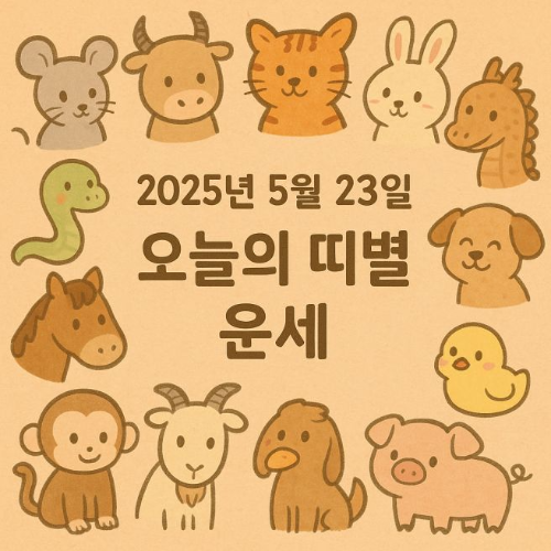 오늘 하루, 여러분의 띠별 운세는 어떤 흐름을 보이고 있을까요? 각 띠별로 5월 23일에 펼쳐지는 운세를 꼼꼼하게 살펴보고, 하루를 지혜롭게 보내는 데 도움 될 조언을 담았습니다. 오늘의 운세가 여러분의 결정을 조금이나마 밝히는 등불이 되길 바랍니다.
